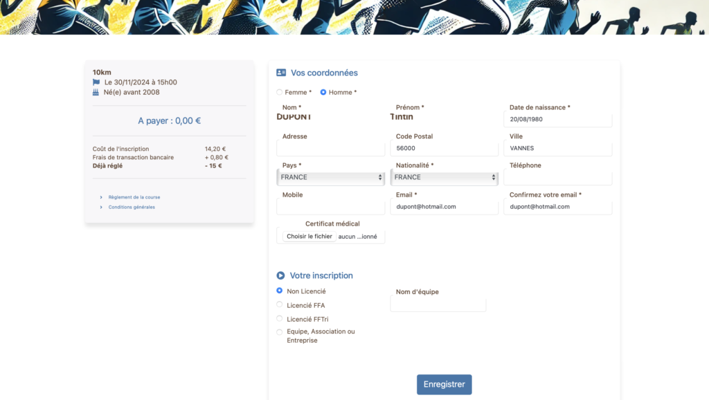 Modifier mon inscription